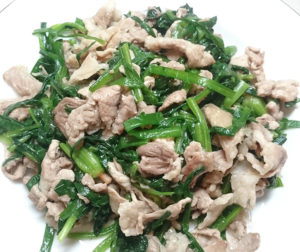 ・豚コマ 300g・豚コマ 300g・ほうれん草 半束・ニラ 一束