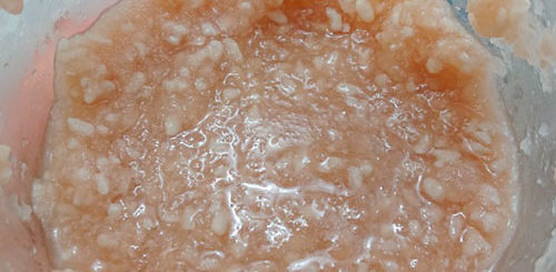 2.1に砂糖50g・みりん25g・水25gを入れ、ゆっくりよく混ぜる。