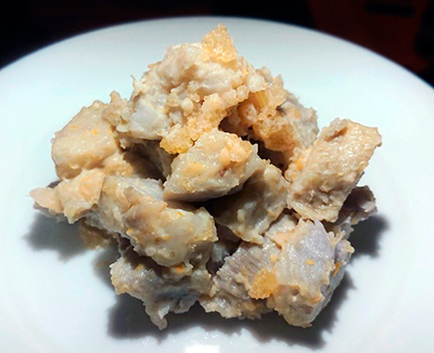 1.里芋は電子レンジで柔らかくして皮を剥いて、さいの目に切る。