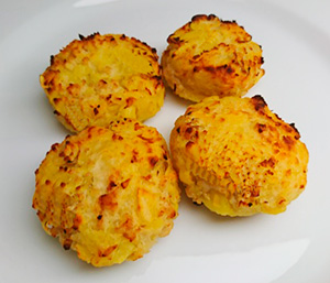4.あら熱が取れたら、じゃがいもと3.とコショウ混ぜる。分けて丸めて焦げ目がつくまでグリルで焼く(10〜15分程)。