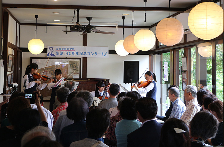 富山で少年時代を過ごした作曲家・滝廉太郎の顕彰活動を進めようと、弊誌の呼びかけで平成28(2016)年に発足した「滝廉太郎研究会」(会長/浅岡節夫富山県オペラ協会名誉会長)。当会では、滝廉太郎の生誕140周年を記念し、さる6月16日(日)、松川茶屋にて「記念コンサート」を開催した。