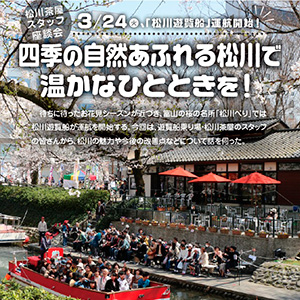 松川茶屋スタッフ座談会 四季の自然あふれる松川で温かなひとときを! 待ちに待ったお花見シーズンが近づき、富山の桜の名所「松川べり」では松川遊覧船が運航を開始する。今回は、遊覧船乗り場・松川茶屋...