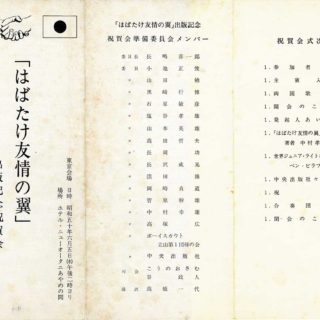 1975年に出版された「はばたけ友情の翼」(中村孝一著)関連の資料です。 「はばたけ友情の翼」出版記念祝賀会(表) 「はばたけ友情の翼」出版記念祝賀会(裏) 出版記念レセプション...