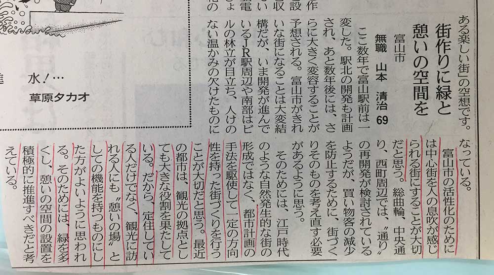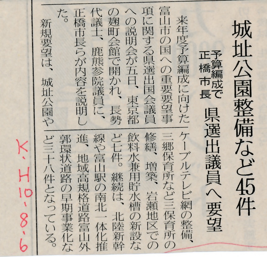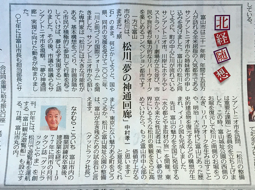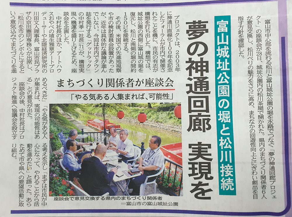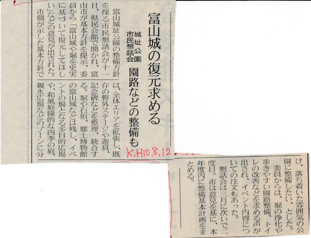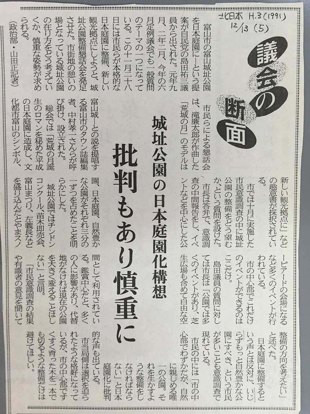 「全国タウン誌会議」「”荒城”は富山城!?」「タウン誌奨励賞」「城址公園を観光拠点に」「城址公園を日本庭園に」「初の滝廉太郎祭」「滝廉太郎記念館オープン」など、グッドラックのまちづくりへの取り組みが紹介された新聞記事です。
