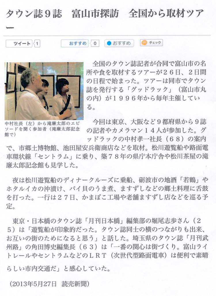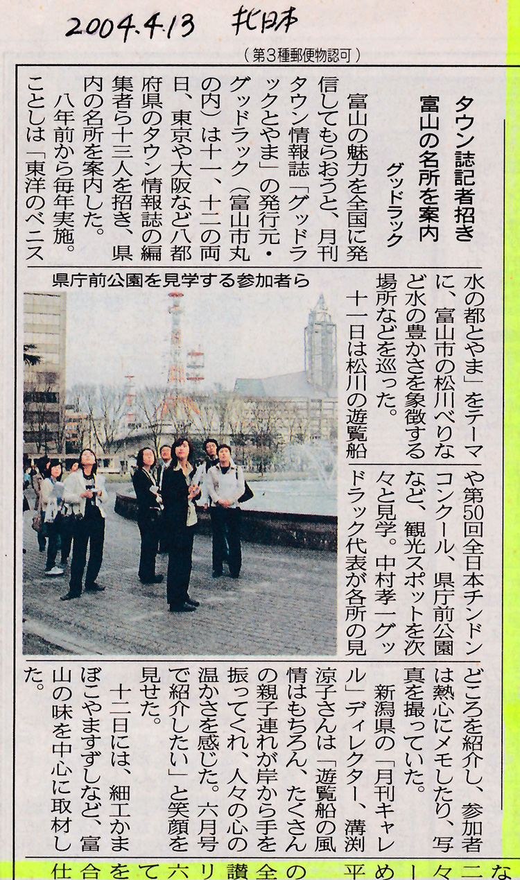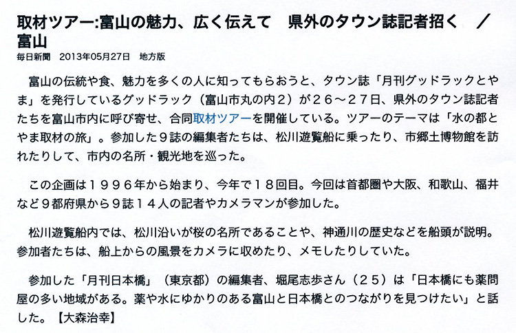 「水の都とやま取材の旅」は、1996年から毎年実施し、2018年も実施いたしました。
