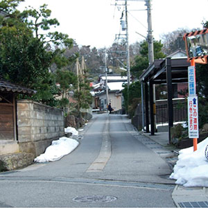 ▲富山道の稲荷社方面をのぞむ。「この道路行き止まり」の看板があり、稲荷社下で舗道は終わる(現在、かつての峠越えができるように工事が行われている)。 暖かい日は、里山散歩などい...