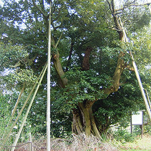 富山県の代表的な椎の老木 ▲舟つなぎの椎の木。かつては、もっとこんもりとしていたそう。現在、富山市が年に1回程手入れをしているそう。忠魂碑が隣にあった頃は訪れる人も多かったそうだが、近年は大木...