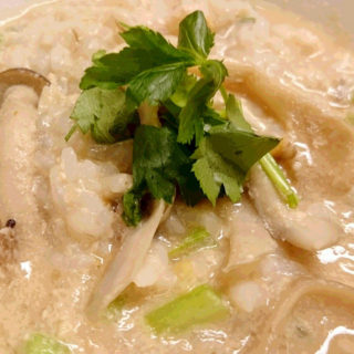 レシピ&写真提供:新村こうじみそ商店 新村弘之さん ・材料・ ・ごはん ・味噌 ・酒かす ・だし ・まいたけ ・しめじ ・大根の葉 ・水