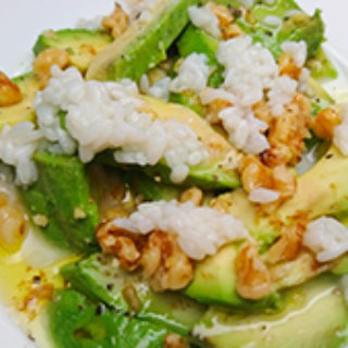 レシピ&写真提供:新村こうじみそ商店 新村弘之さん ・材料(2〜3人前)・ ・アボガド 1/2個 ・クルミ 適量 ・オリーブ油 適量 ・塩 微量 ・胡椒 微量 ・甘酒 適量